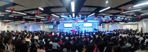 The new facility was filled with students all excited for to hear the preaching.